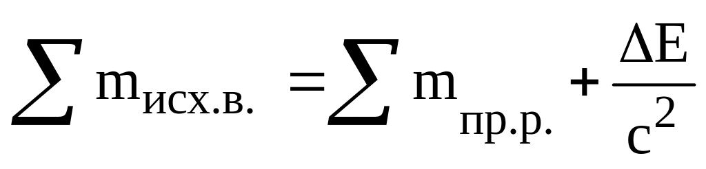где Е – выделившаяся энергия, m – изменение массы системы, с - скорость света в вакууме (3,0108 м/с). В результате уравнение (1-3) следует записать в следующем виде: