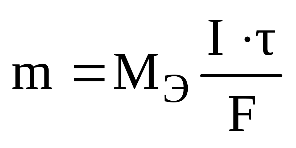 где m - масса продукта электролиза, I - сила тока, - время пропускания тока, F - константа, равная 96485 Кл.моль-1 (число Фарадея), Мэ - эквивалентная масса.