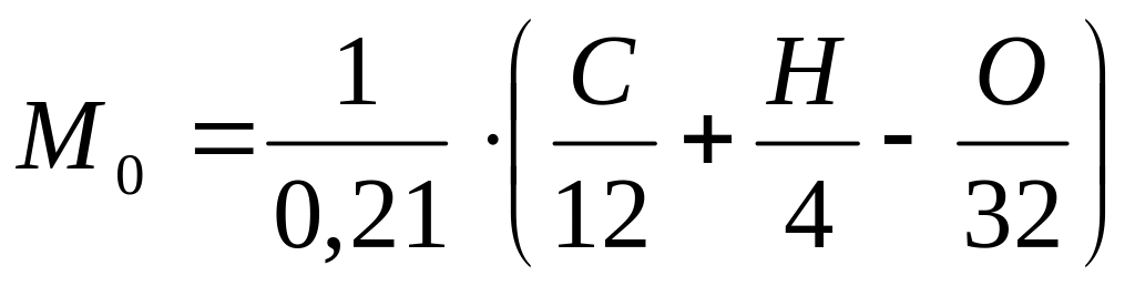 Прежде всего необходимо определить количество воздуха, теоретически необходимого для сгорания 1 кг топлива: