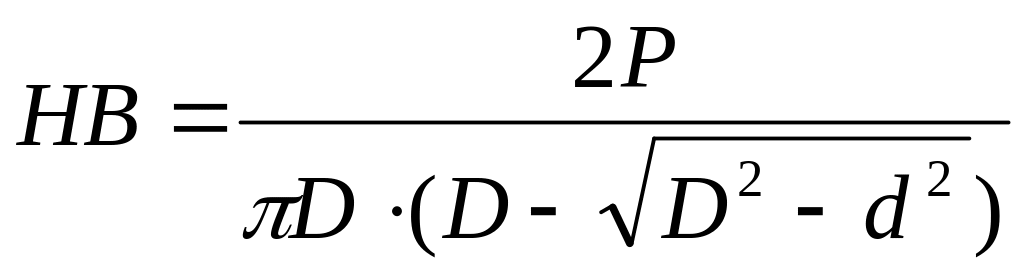 где Р – приложенная нагрузка, кгс; D – диаметр шарика, мм; d – диаметр отпечатка, мм.