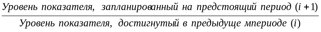 Рассчитанная величина показывает, во сколько раз текущий уровень превышает предшествующий (базисный) или какую долю от последнего он составляет. Данный показатель может быть выражен в долях или в процентах.