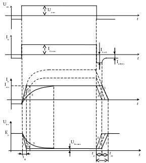 1.3. Динамические режимы работы электронного ключа. Длительности фронта, рассасывания и среза.