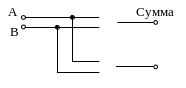 Полусумматор производит сложение двух одноразрядных двоичных чисел. Он имеет два входа слагаемых: А, В и два выхода: суммы (Sum) и переноса (Carry). Суммирование производится элементом Исключающее ИЛИ, а перенос - элементом И. Эквивалентная схема имеет вид: