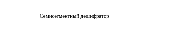 Данное устройство предназначено для управления семисегментным индикатором: четырехразрядное двоичное число на входе определяет комбинацию логических уровней на выходе дешифратора таким образом, что при подключении к нему семисегментного индикатора на его дисплее отображается символ, соответствующий числу на входе.