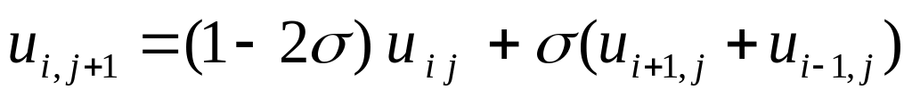 Уравнение (3.7) соответствует явному двухслойному шаблону рис.3.2, а уравнение (3.8) соответствует неявному двухслойному шаблону рис.3.3.
