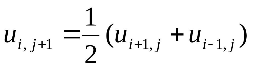 Записываем полученные значения и i1 (i = 1, 2, 3, 4, 5) во вторую строку табл. 3.1. После этого переходим к вычислению значений на втором слое при j = 1: