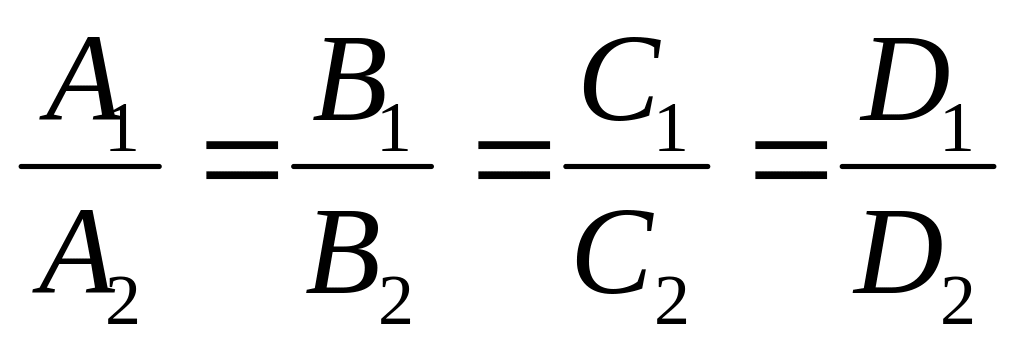 Отсюда получаем условие параллельности двух плоскостей: плоскости A1x+B1y+C1z+D1=0 и A2x+B2y+C2z+D2=0 параллельны тогда и только тогда, когда
