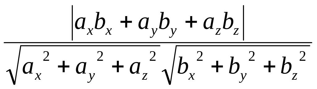 Из этой формулы получаем условие перпендикулярности двух прямых: прямые, имеющие направляющие векторы =(ах;ау;az) и =(bх;bу;bz), перпендикулярны тогда и только тогда, когда