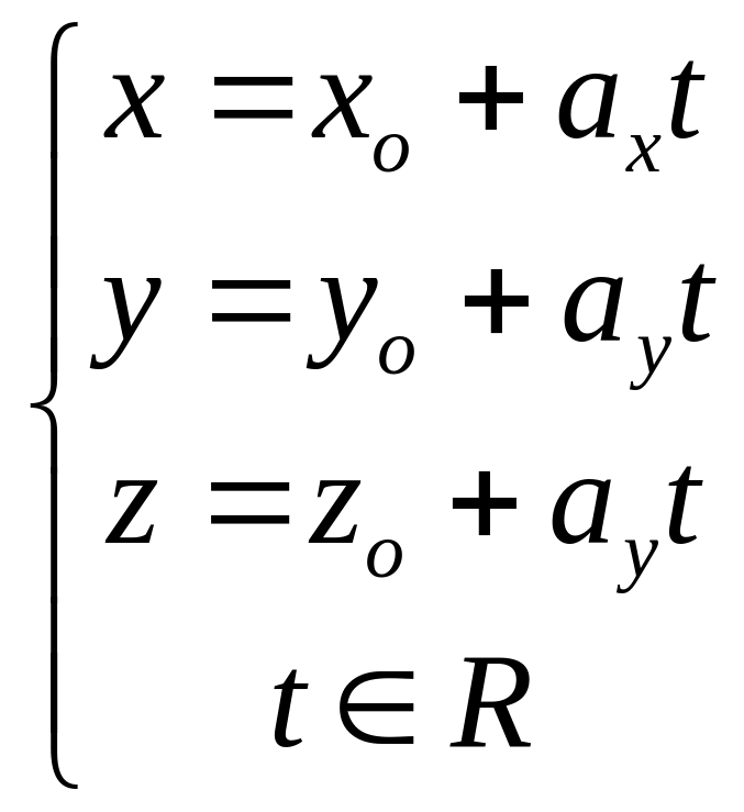 4о. Параметрическое уравнение прямой, проходящей через точку Мо(хо;уо;zo) и имеющей направляющий вектор =(ах;ау;az):