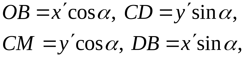 Эти формулы выражают старые координаты (x,y) произвольной точки М через новые координаты (x,y) этой же точки при повороте осей на угол .