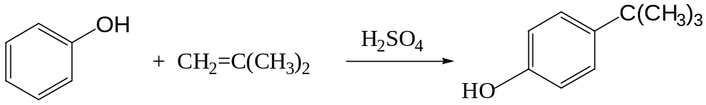 При алкилировании фенола изобутиленом в присутствии Al(OC6H5)3 получают важный антиоксидант – 2,6-ди(трет-бутил)фенол: