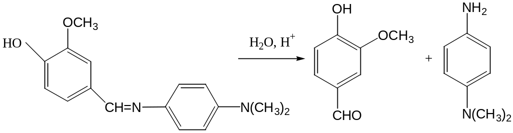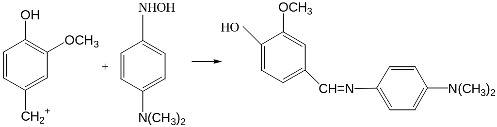 Эти альдегиды получают при взаимодействии гваякола (о-метоксифенола) или N,N-диметиланилина, соответственно, с формальдегидом и N,N-диметил-п-нитрозоанилином в кислой среде. Схема протекающих при этом реакцией представлена ниже на примере ванилина.