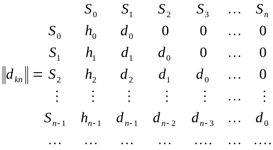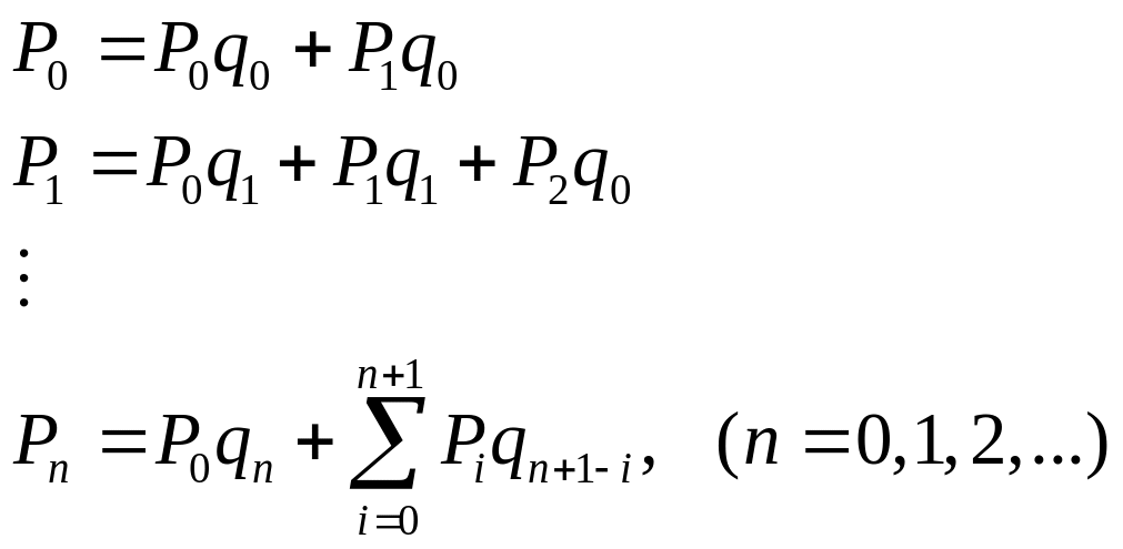 Строка матрицы совпадает со строкой , потому что рассматривается интервал между моментами регенерации (моментами выхода заявки из СМО). Эти интервалы не отличаются, была ли в СМО одна заявка в предыдущий момент регенерации (она находилась на обслуживании) или заявок в СМО вообще не было.
