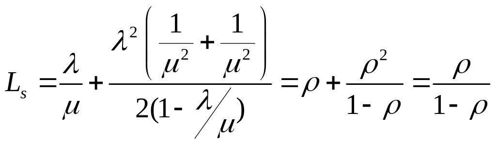 При подстановке математического ожидания и дисперсии в формулу Хинчина–Поллачека получаем ту же формулу , которая была получена в п. 1.4.1 для пуассоновских систем: