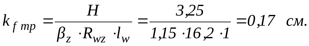 Таким образом, расчет ведем по металлу границы сплавления. Требуемый катет шва на один сантиметр ширины настила: