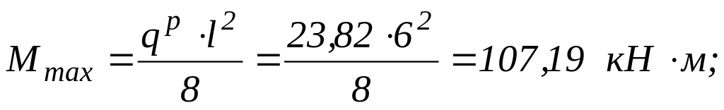 Расчетные значения изгибающего момента и перерезывающей силы: