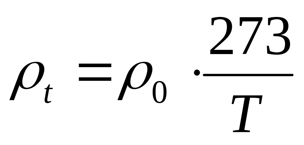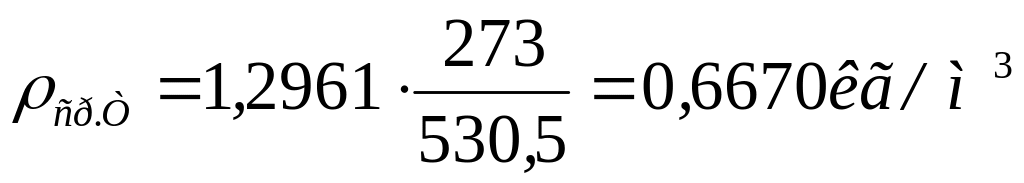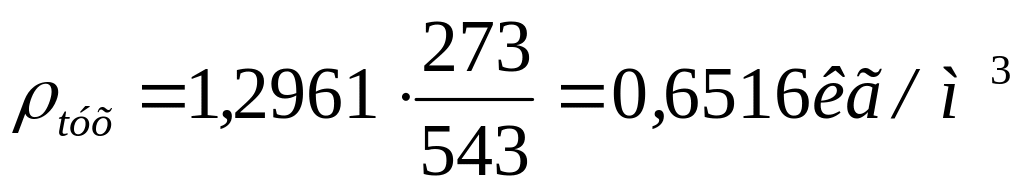 Плотность продуктов сгорания при любой заданной температуре (Т) определяется выражением: