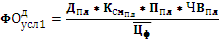 Третий условный показатель фондоотдачи рассчитывается при фактической его стоимости, фактическом количестве отработанных дней, фактическом коэффициенте сменности и при плановом уровне остальных факторов: