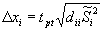 где. tpt - коэффициент Стьюдента, определяемый по таблицам t-распределения при заданной доверительной вероятности P и числе степеней свободы j = т - п; dii - соответствующий диагональный элемент матрицы D = С-1; Si - точечная оценка стандарта σi, определяемая из выражения: