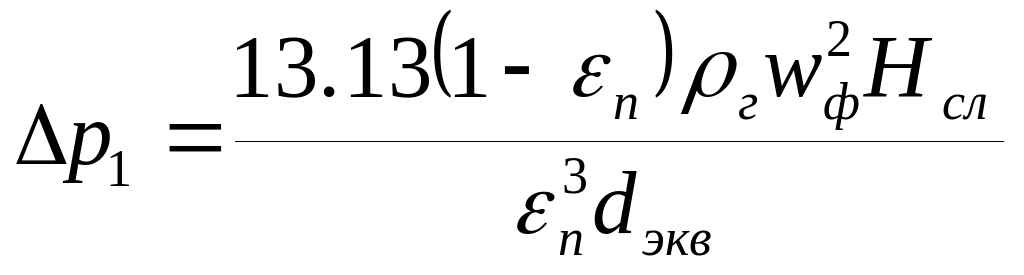 Гидравлическое сопротивление зернистого слоя р1 после регенерации с учетом пыли, оставшейся в нем после регенерации, можно определить по формуле: