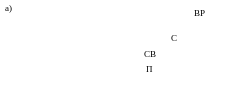 де П - колії прийому поїздів; СВ - колії сортування, формування та відправлення на лінію; С - парк сортування вагонів, що прибули на станцію; ВР - вантажний район; 1 - технічна контора; 2 - пункт технічного обслуговування; 3 - екіпірувальні пристрої для локомотивів; 4 - вагонні ваги; 5,6 - гірка малої потужності; 7 - колії ремонту вагонів; 8 - наскрізні колії вантажного району; 9 - можливість примикання під'їзних колій (п/к)
