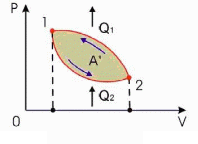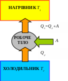 Ефективність теплового насоса, призначеного підвищувати температуру більш нагрітого тіла, визначається відношенням теплоти, отриманої нагрівником Q1(-) до затраченої при цьому роботи А: