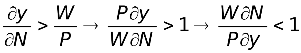 В математическом виде неокейнсианский мультипликатор можно получить следующим образом. Условия сбалансированности рынков блага и труда в состоянии кейнсианской безработицы выражаются равенствами