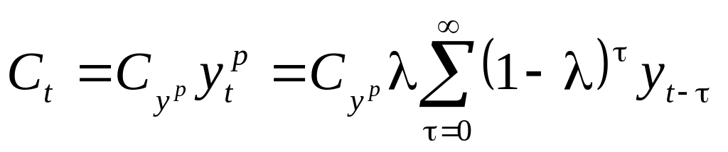 Поскольку перманентный доход не является статистически наблюдаемой величиной, то для алгебраического построения функции потребления М. Фридман предложил исчислять его как средневзвешенную величину всех ранее полученных доходов