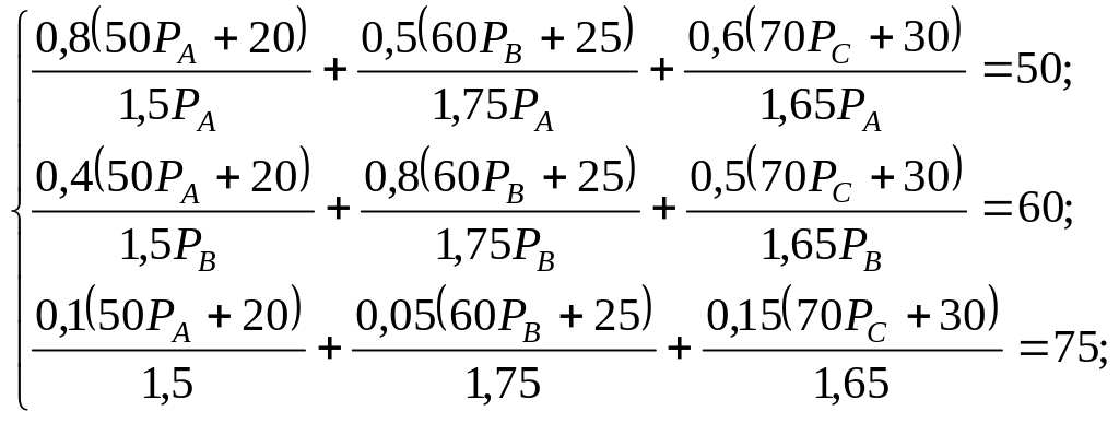 Исходные запасы благ и денег следующие:QA0 = 50; QB0= 60; QC0= 70; MI;0= 20; MII;0= 25; MIII;0= 30.