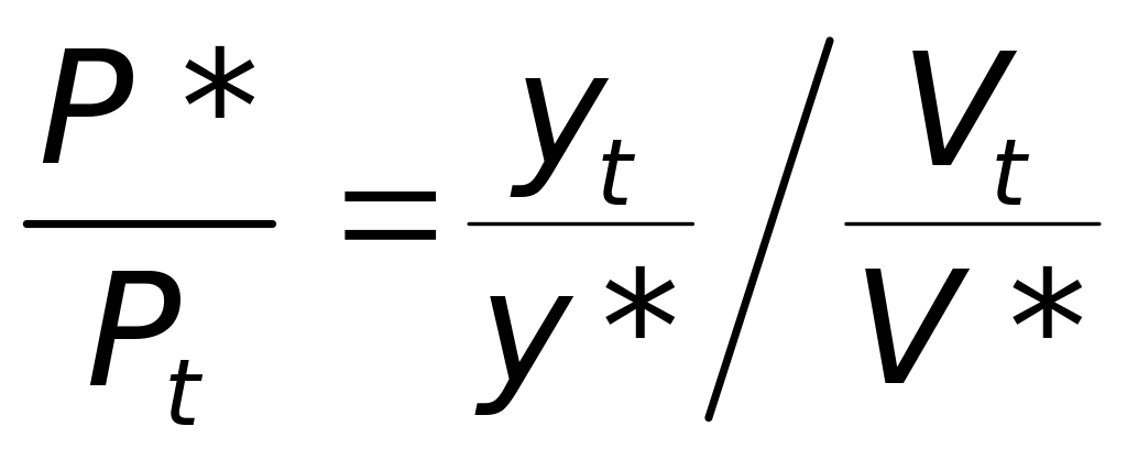 Несмотря на неоклассическое происхождение и простоту данной модели, в ней наряду с монетарными учитываются и немонетарные факторы инфляции. При заданном количестве денег соотношение между равновесным и фактическим уровнями цен можно представить отношением степени использования производственных мощностей к степени «наполнения» кассы домашних хозяйств, имея в виду, что V* соответствует нормальному объему спроса на деньги:
