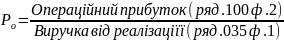 Операційна рентабельність реалізованої продукції визначається за формулою