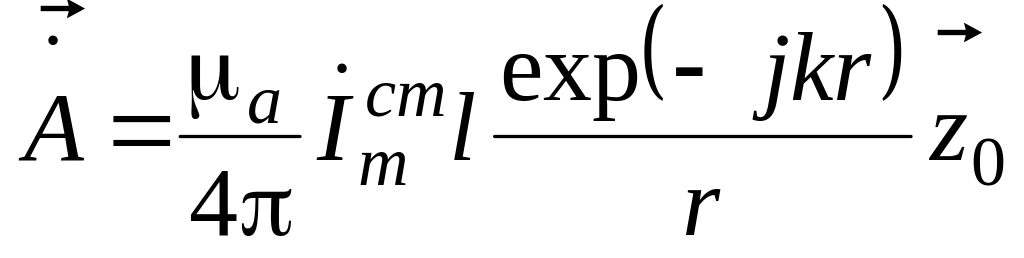 Поле такого излучателя, помещенного в начало сферической системы координат (рис. 12.2), описывается векторным потенциалом
