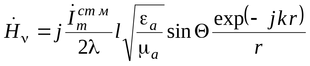 Элементарный магнитный излучатель отличается от элементарного электрического излучателя тем, что по нему протекает некий фиктивный магнитный ток. Реальным аналогом такого излучателя являются рамка с током или щель, прорезанная в металлическом экране. Расчет поля элементарного магнитного излучателя выполняется на основе принципа двойственности. Составляющие поля в дальней зоне такого излучателя определяются следующими выражениями: