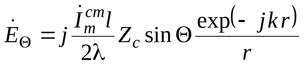 Поле в дальней зоне ( >> 1) представляет собой сферическую волну, распространяющуюся со скоростью , равной скорости света в данной среде. Составляющие напряженностей полей в дальней зоне определяются следующими выражениями: