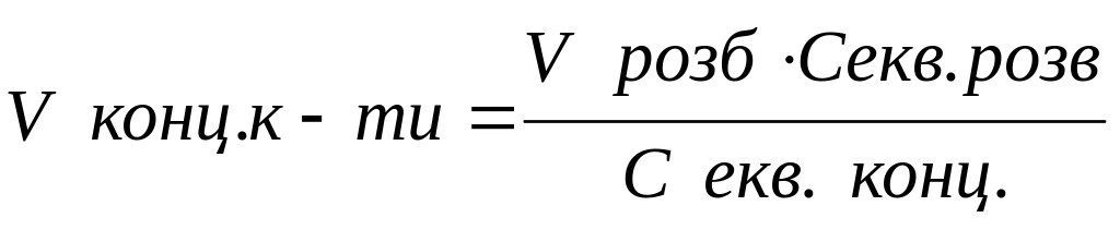 2. Розрахункові формули для визначення еквівалентної молярної концентрації стандартизованого розчину.