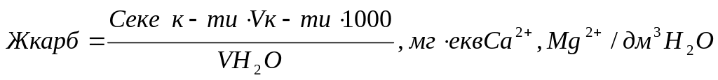 Карбонатна твердість виявляється шляхом титрування розчином кислоти з відомою еквівалентною молярною концентрацією (з лабораторної роботи № 10) у присутності метилоранжу.