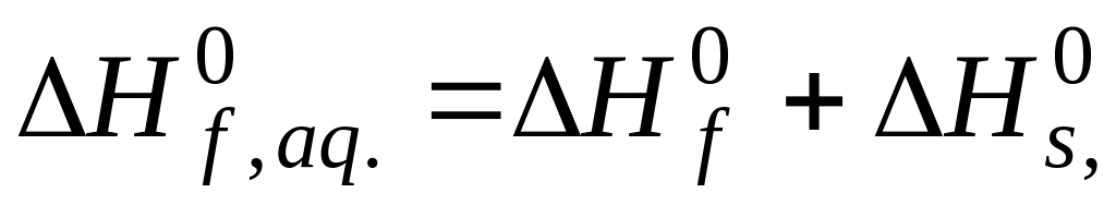 3. Згідно закону Гесса тепло утворення речовини в розчині дорівнює його теплу утворення плюс тепло розчинення: