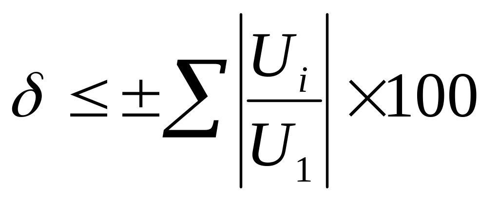 − изменение показаний прибора при отклонении формы измеряемого напряжения от синусоидальной не превышает