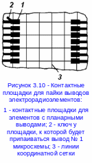 Если у контактной площадки регламентируется только минимальная радиальная ширина bmin, то такую площадку показывают окружностью, диаметр которой равен диаметру отверстий, а в технических требованиях указывают: «Форма контактных площадок произвольная, bmin =...». Контактные площадки для припайки выводов планарных корпусов микросхем выполняют, как показано на рис. 3.9.