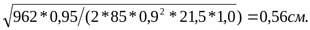 = 4163,5*0,95 /90*0,935 = 47,0 см, приймаємо B