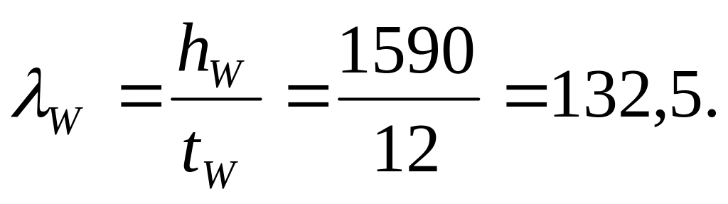 3) При этом в соответствии с формулой (2.14) отношение толщины стенки tw =1,2см и толщины полки tf = 2,0см должно быть tf / tW ≤ 3. Для принятых размеров балки tf / tW = 20/1,2=1,67<3.
