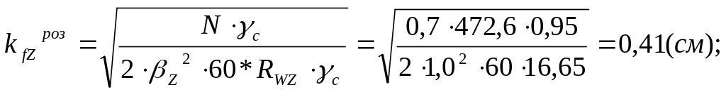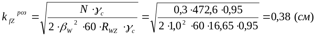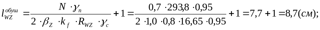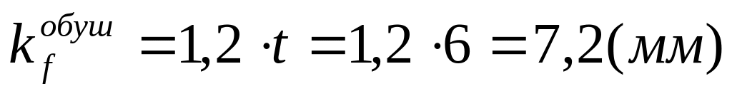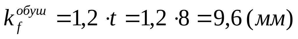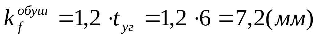 Розрахунковий катет зварного шва обушка по металу межі сплавлення |:
