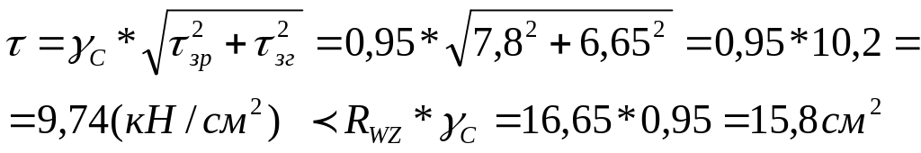 Розрахунок швів Ш4, Ш5, Ш6 і Ш7 проводимо по металу межі сплавлення.