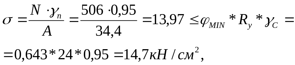 Зменшимо площу поперечного перерізу, прймаємо кутики 75х6, А=17,56см2 .