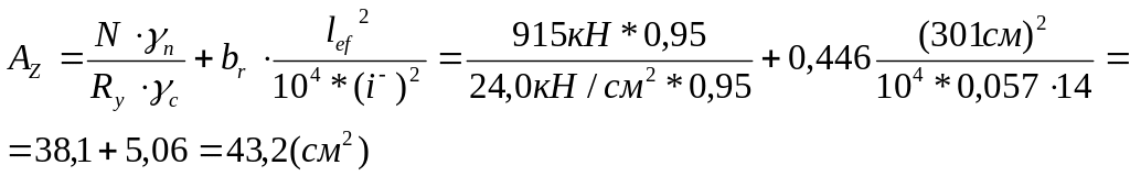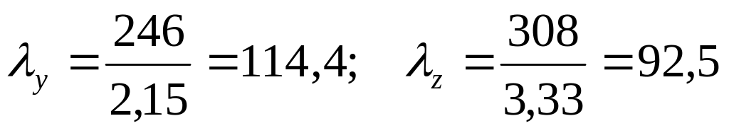 Необхідна площа перерізу із двох рівнополичних кутиків при розрахунку щодо вісей «y» та «z»:
