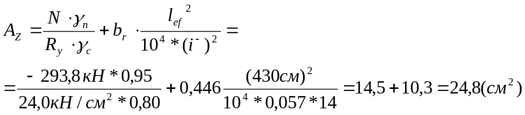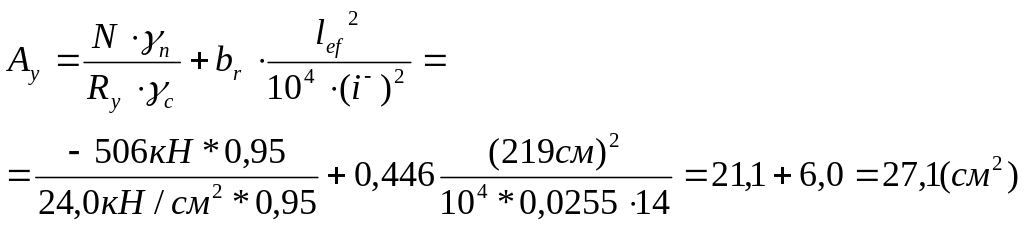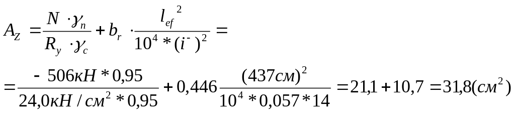 =3,44(м), =4,30(м), =240 (МПа), N= -293,8(кН)