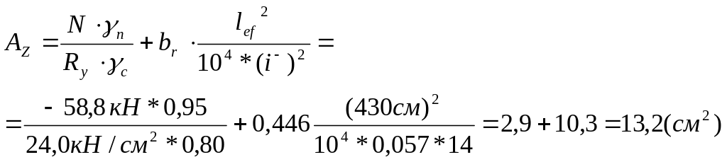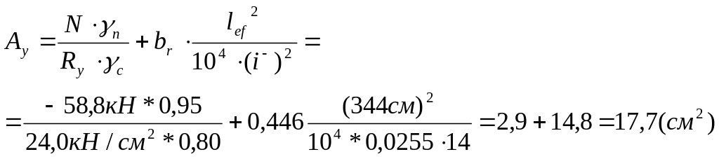 =3,44(м), =4,30(м), =240 (МПа), N= -58,8(кН)(стиск)