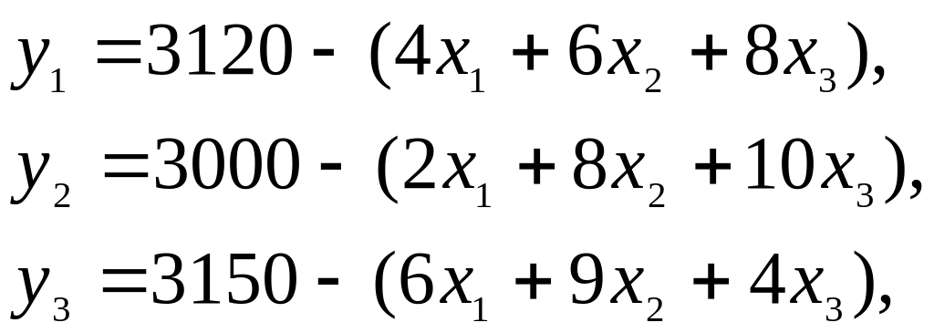 Чтобы вид системы ограничений был упорядоченным, надо умножить первые 3 ограничения на -1.