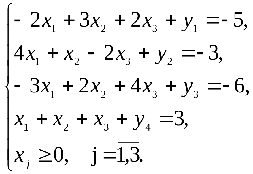 Пусть в задаче линейной оптимизации k ограничений заданы в виде неравенств и m-k ограничений в виде равенств. После приведения ограничений к каноническому виду и разрешения относительно базисных неизвестных в ограничениях-неравенствах слева будут базисные неизвестные, а в равенствах – нули.