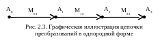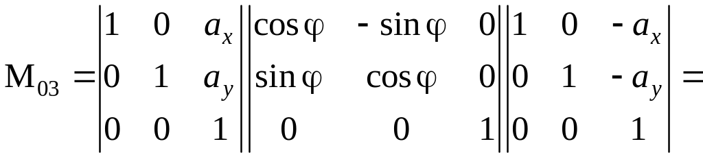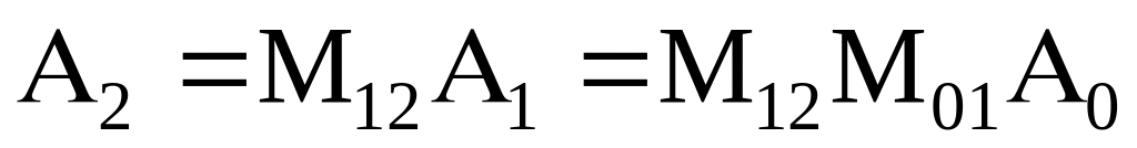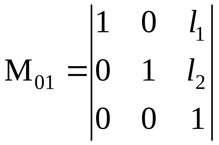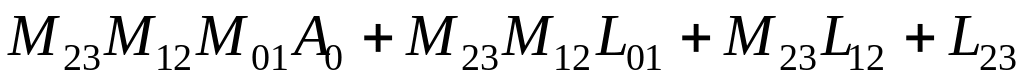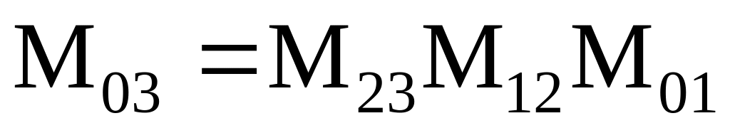 На рис. 2.3 M01, M12 и M23 – матрицы преобразования в однородной форме, переводящие точку из положения A0 в положения A1, A2 и A3 соответственно.